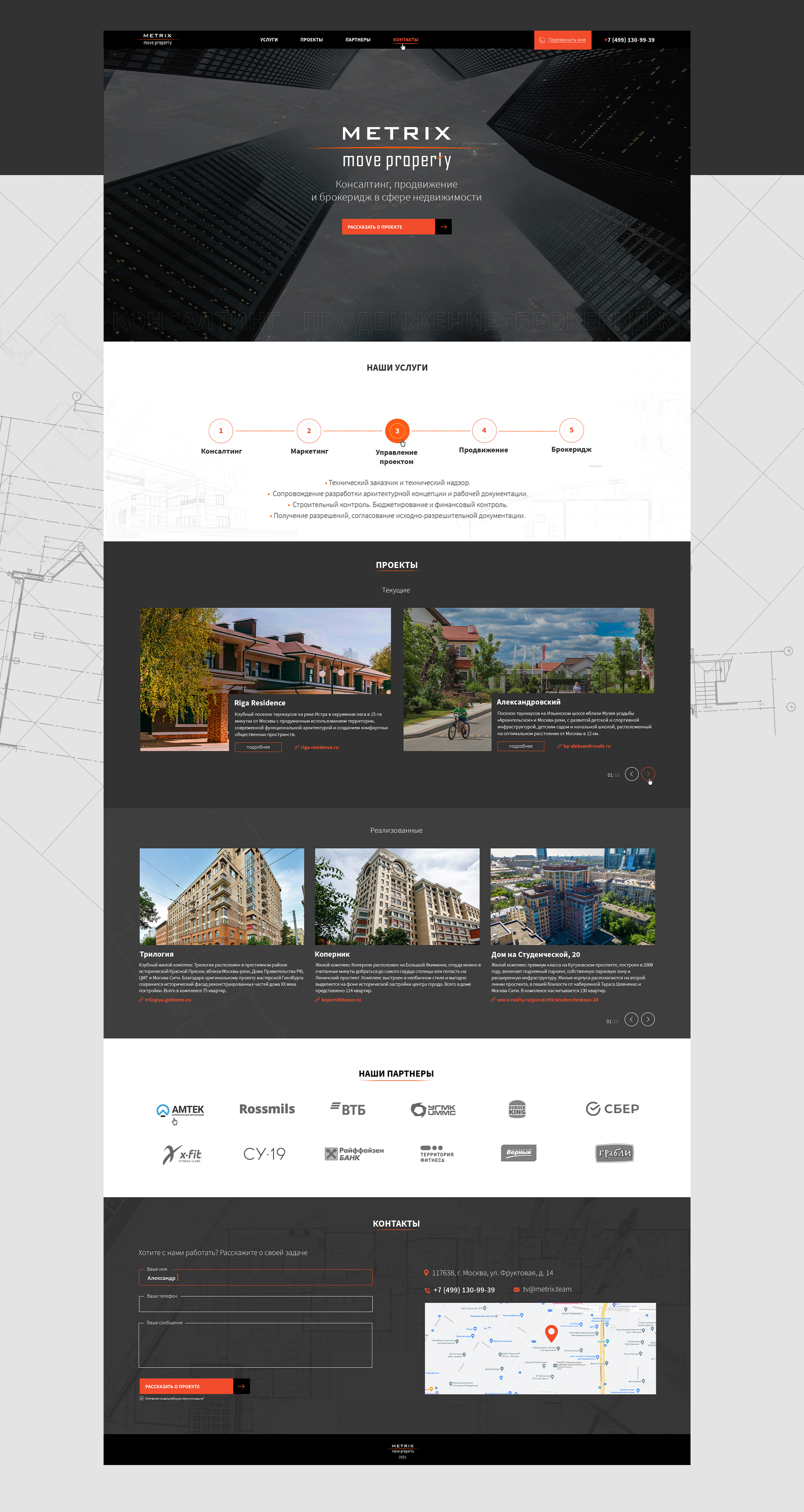 Сайт для консалтинговой компании «Metrix»